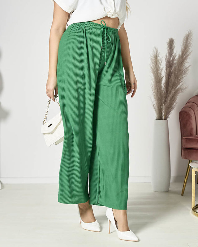 Női széles rakott palazzo nadrág zöld színben - Ruházat