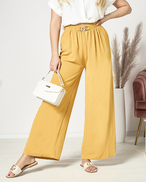 - Divatos női széles palazzo nadrág. A modell könnyű és légies anyagból készült, rugalmas derékszíjjal és aranyszínű fém díszítéssel rendelkezik. Tökéletes a mindennapi viselethez! MEGJEGYZÉS: A mérési pontosság (+/-) 1 cm.