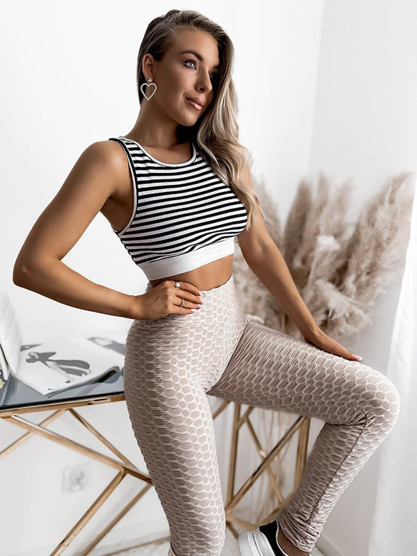 - Sportos női leggings érdekes mintával. A termék rugalmas anyagból készült, és rugalmas derékpánttal rendelkezik. Minden nő szekrényében kötelező darab! Mérési pontosság (+/-) 1 cm.