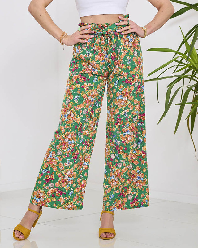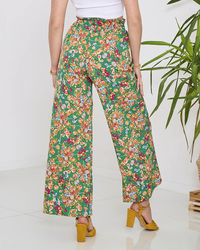 Női zöld palazzo nadrág narancssárga virágokkal- Ruházat