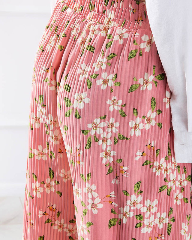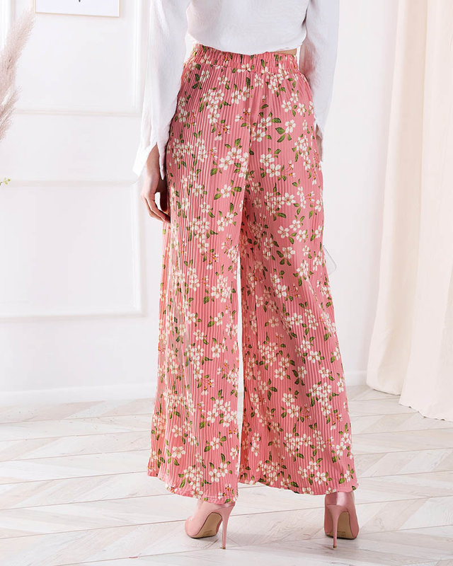 Női rózsaszín virágos szövetnadrág - Ruházat