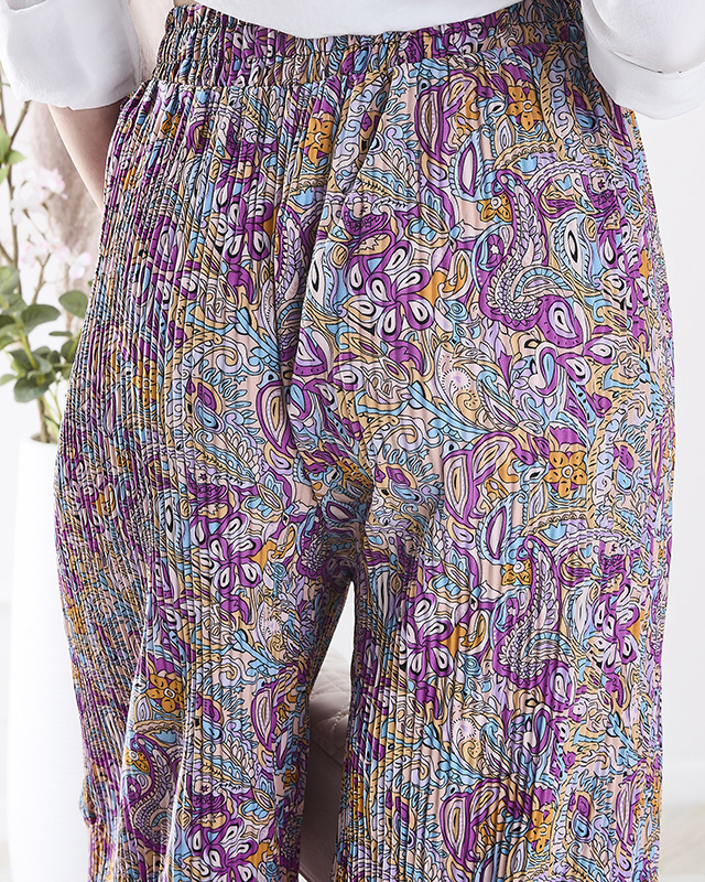Mintás, széles szárú női nadrág lila színben- Ruházat