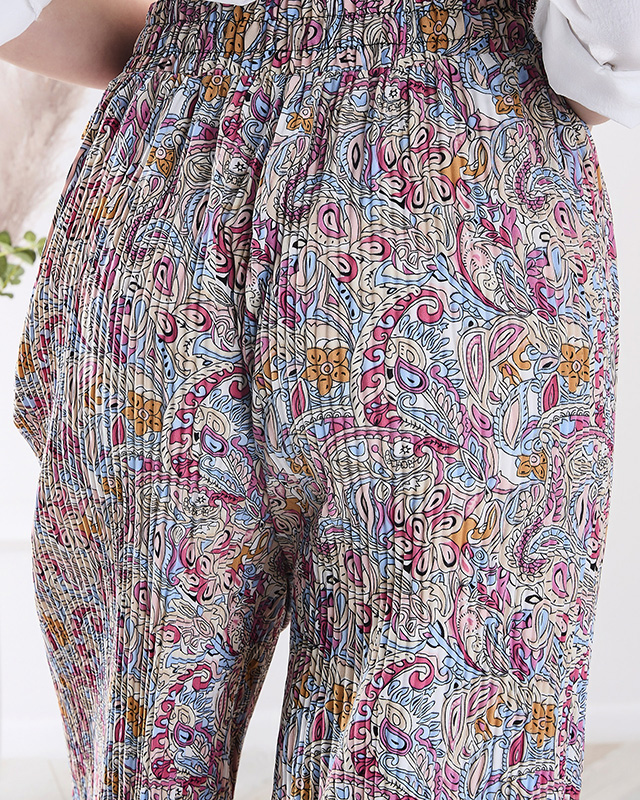 Mintás, széles szárú női nadrág krém színben- Ruházat