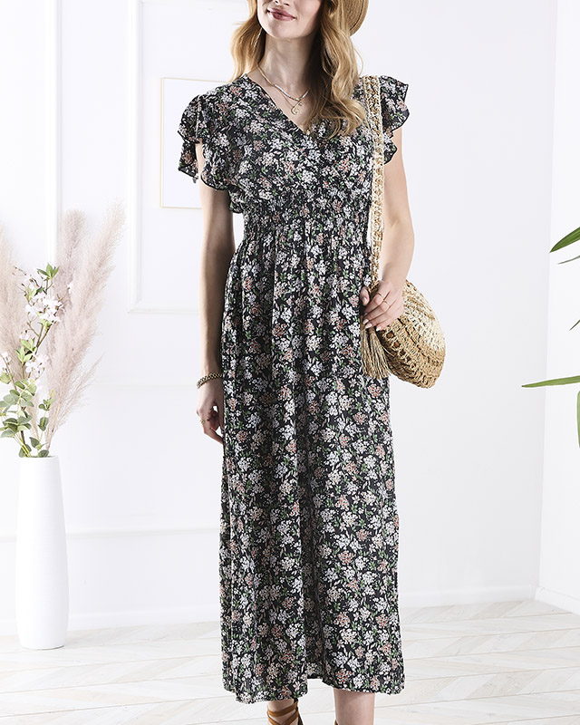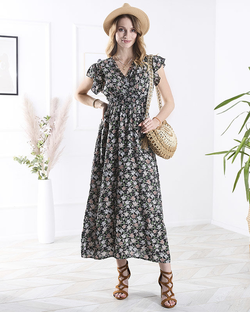 - Könnyű női ruha, virágmintás anyagból. Modell borítékolt nyakkivágással, elasztikus derékpánttal orz rövid ujjakkal. Tökéletes szandállal! MEGJEGYZÉS: A mérési pontosság (+/-) 1 cm.