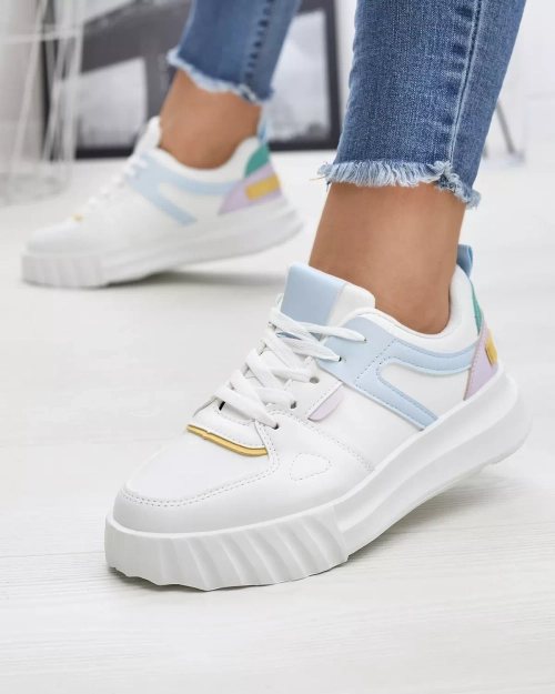Öko-bőr női fehér alkalmi sportcipő színes betétekkel Netiris - Lábbeli
