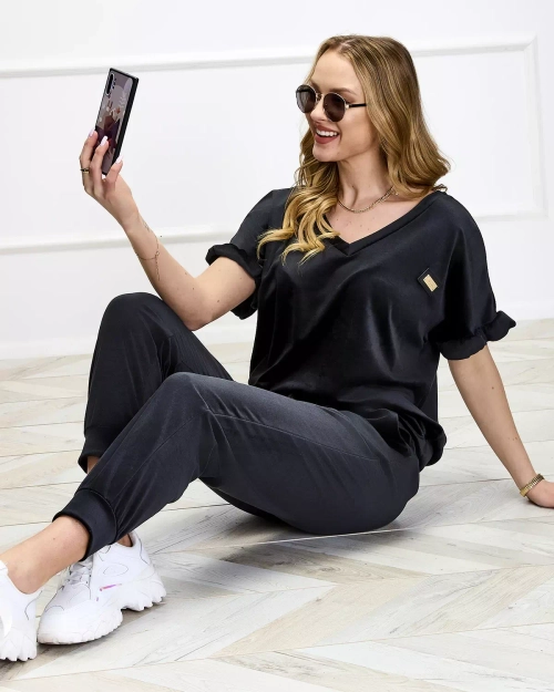Női fekete tréningruha szett díszítéssel - Ruházat
