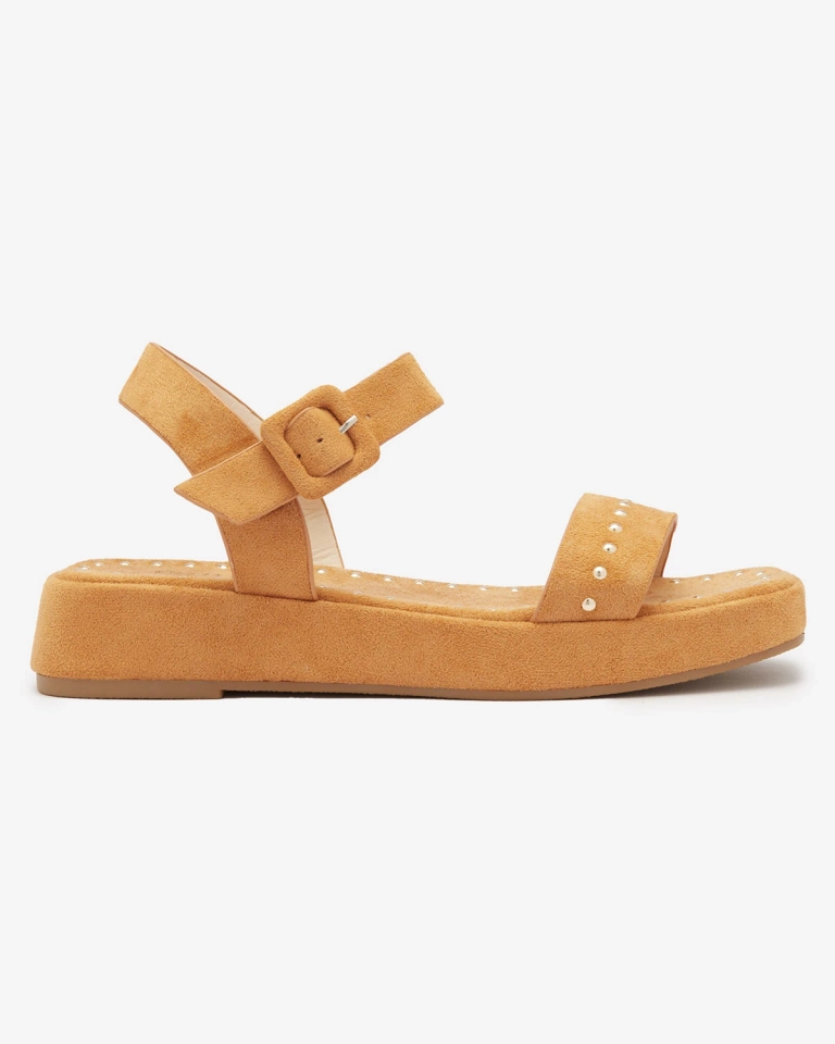 • Női szandál vastag talppal, organikus velúr bőrből. Strasszkövekkel díszített, csattal záródó modell. Kényelmes női lábbeli nyárra!