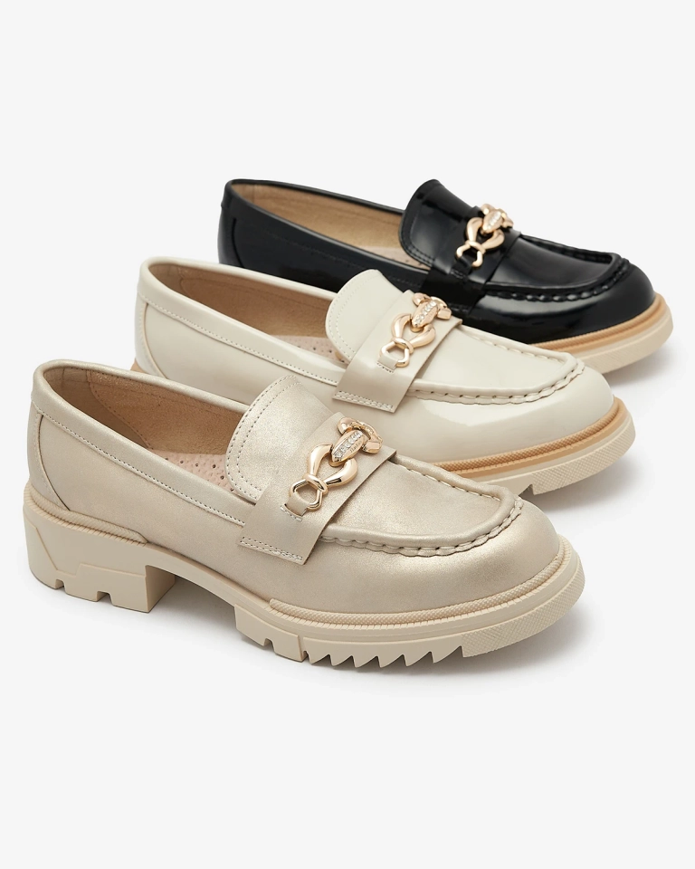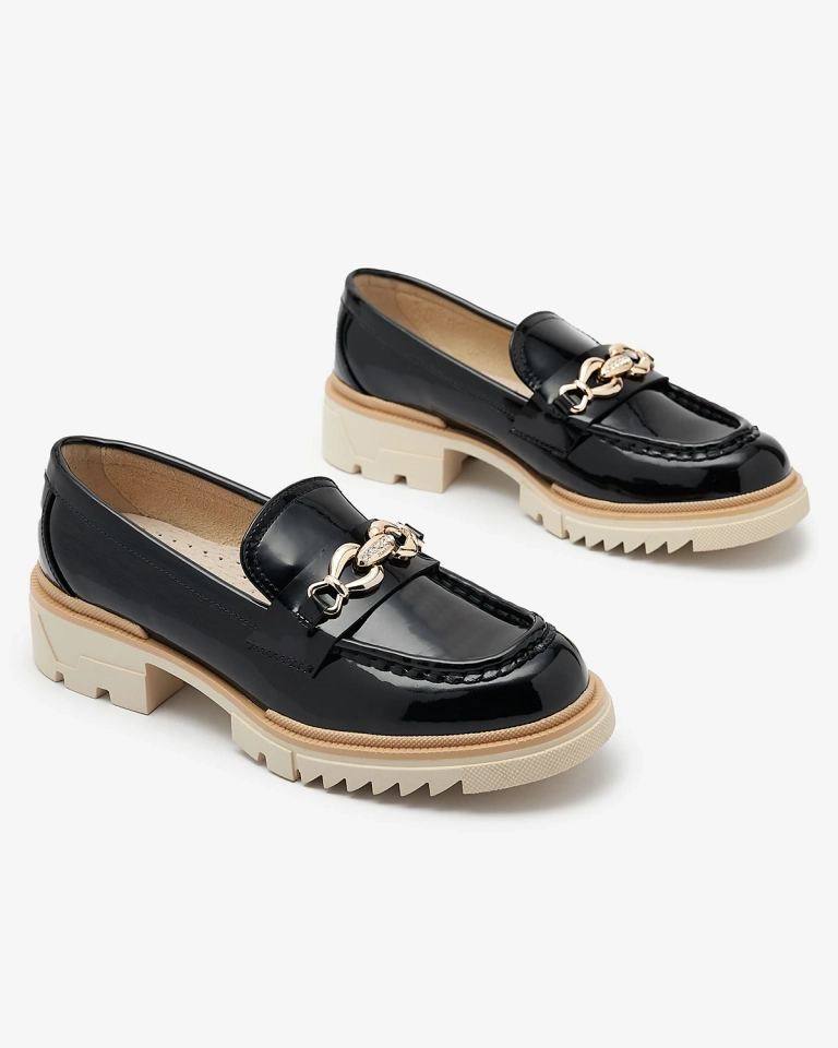 Fekete lakkozott női mokaszinok lánccal Sotella - Lábbeli