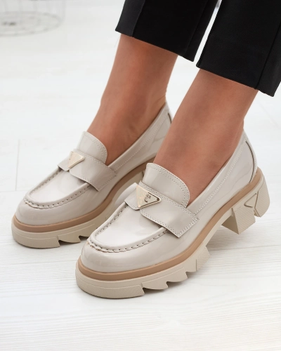 Lakkozott női bézs színű mokaszin díszítéssel Sarix - Lábbeli