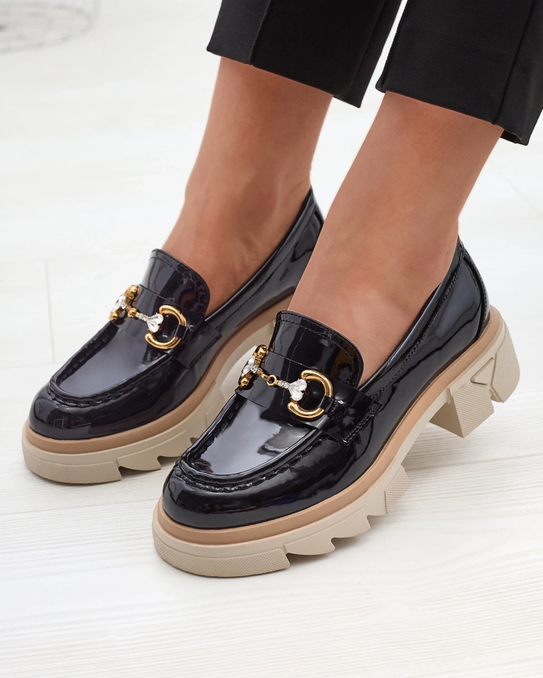 Fekete lakkozott női mokaszin kristályokkal Inriw - Lábbeli