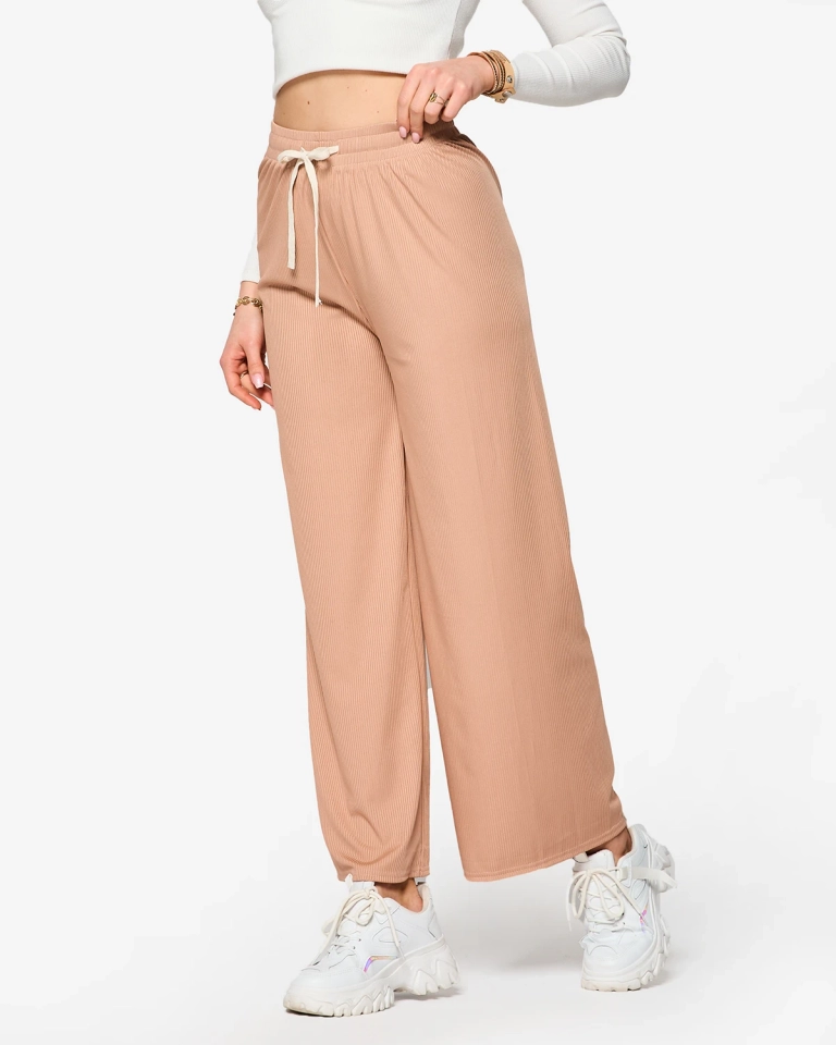- Könnyű, rakott anyagból készült, széles női palazzo nadrág. A termék széles elasztikus derékszíjjal és megkötött nadrággal rendelkezik, amely tökéletesen kiemeli a derekat. Az idei szezon kötelező darabja! MEGJEGYZÉS: A mérési pontosság (+/-) 1 cm.