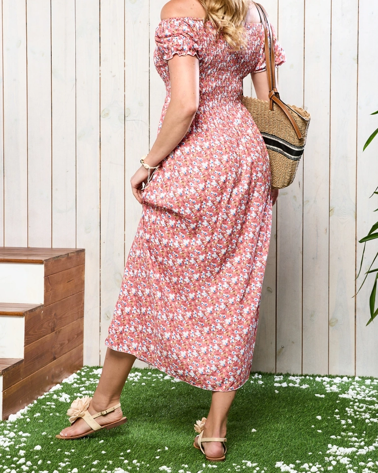 Korall női midi ruha virágmintával - Ruházat