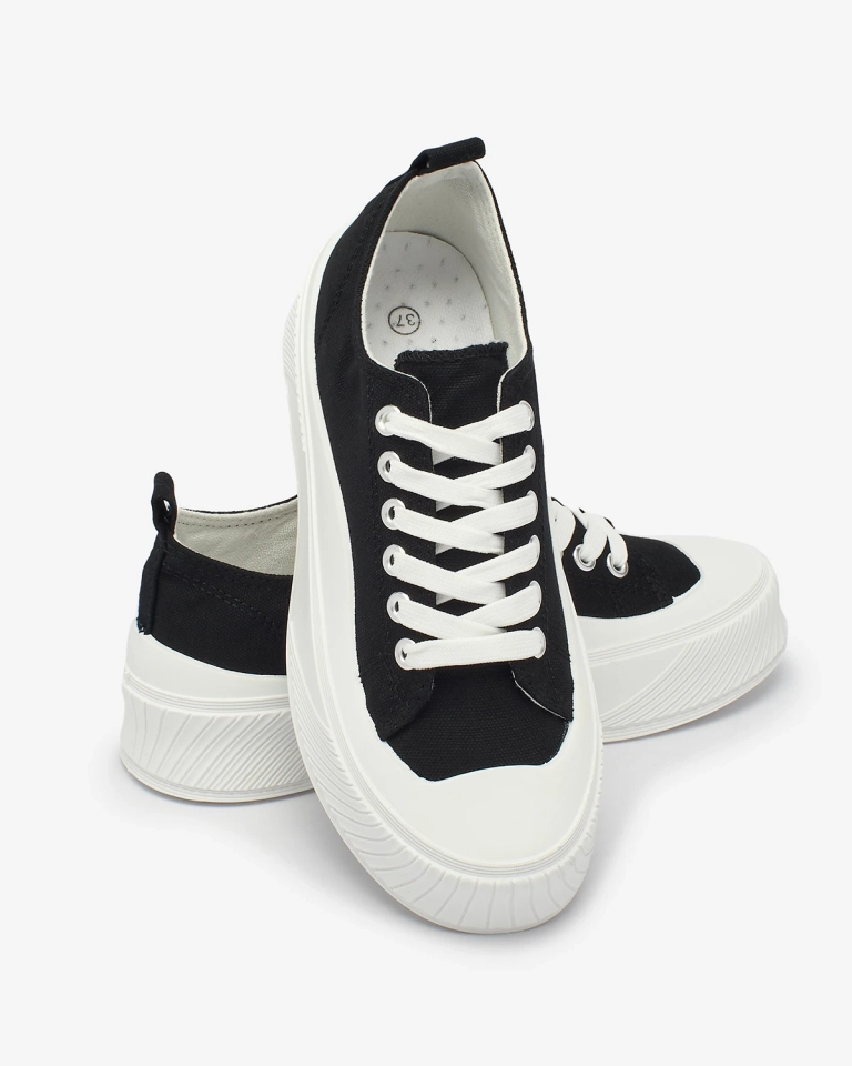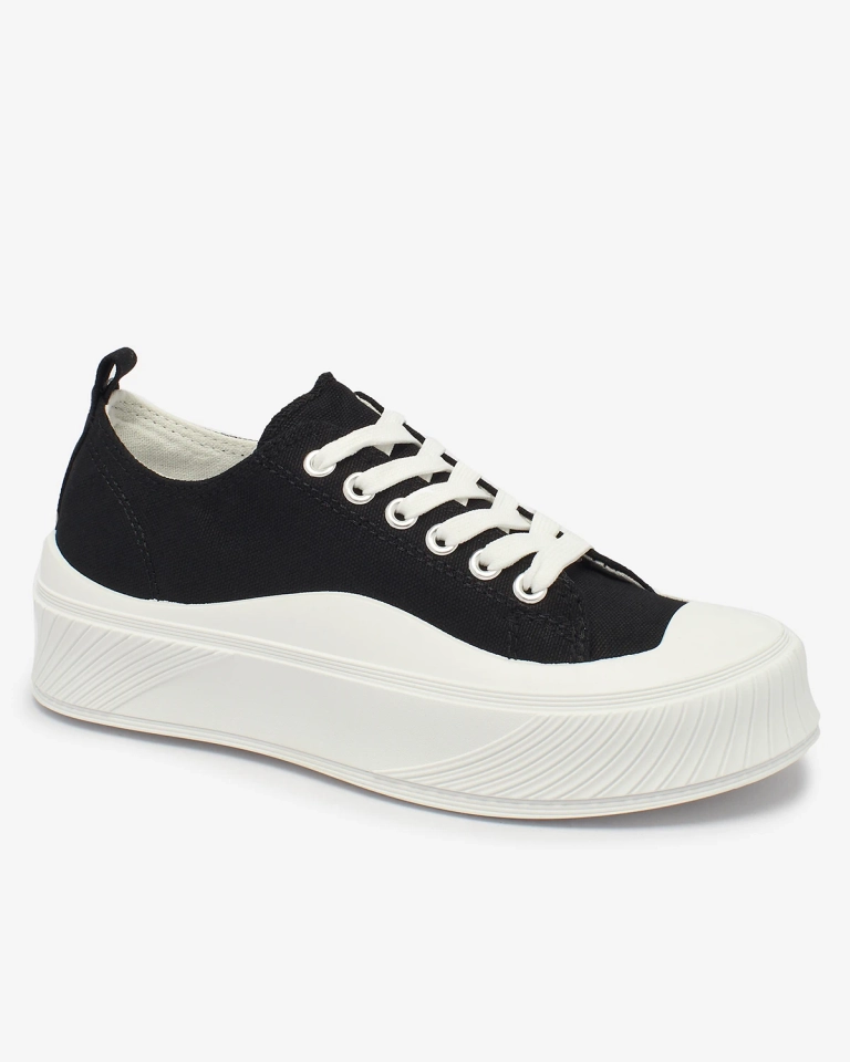 - Időtlen női sportcipő szövet anyagból. A modell vastag platformon. A felsőrész fűzős. Remekül illik majd a mindennapi stílushoz!