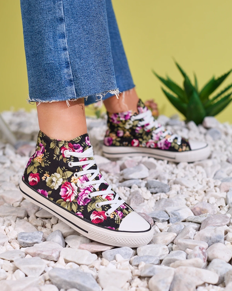 Royalfashion Női magas fekete tornacipő virágmintával Soxic
