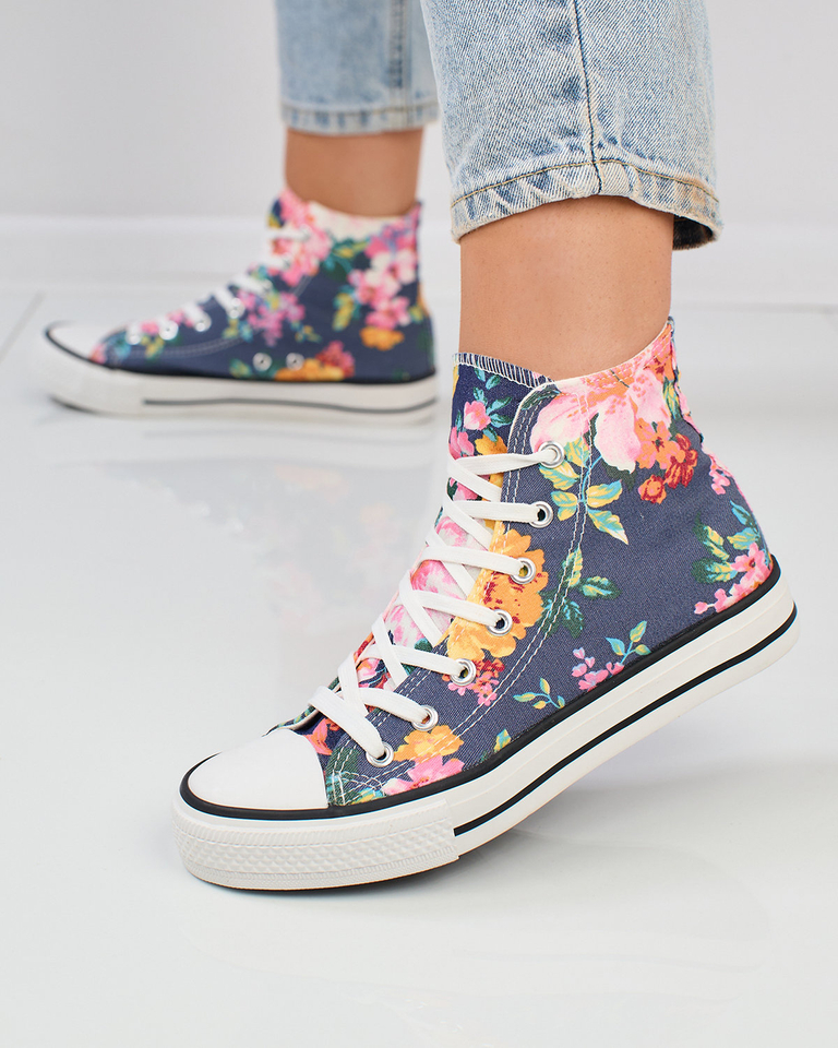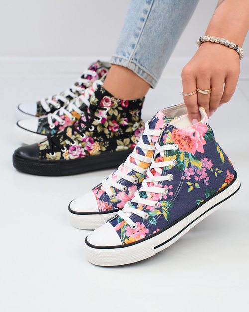 Royalfashion Női magas tengerészkék tornacipő színes virágmintával Fahenna