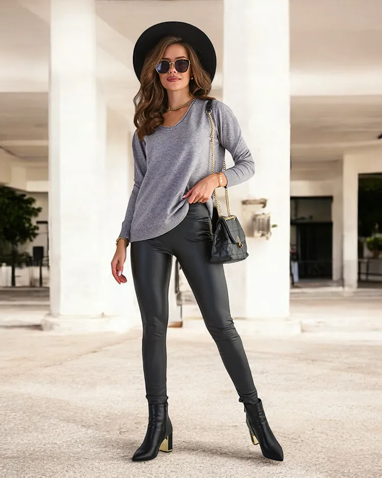 Royalfashion Szürke női pulóver szíves nyakkivágással