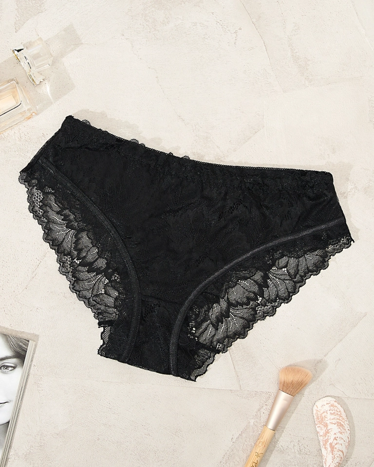Royalfashion Fekete pamut csipkés női bugyi