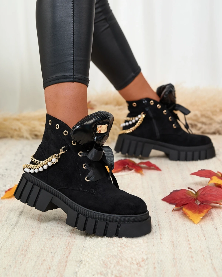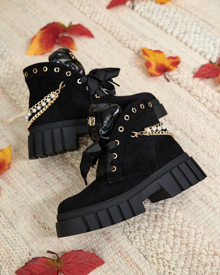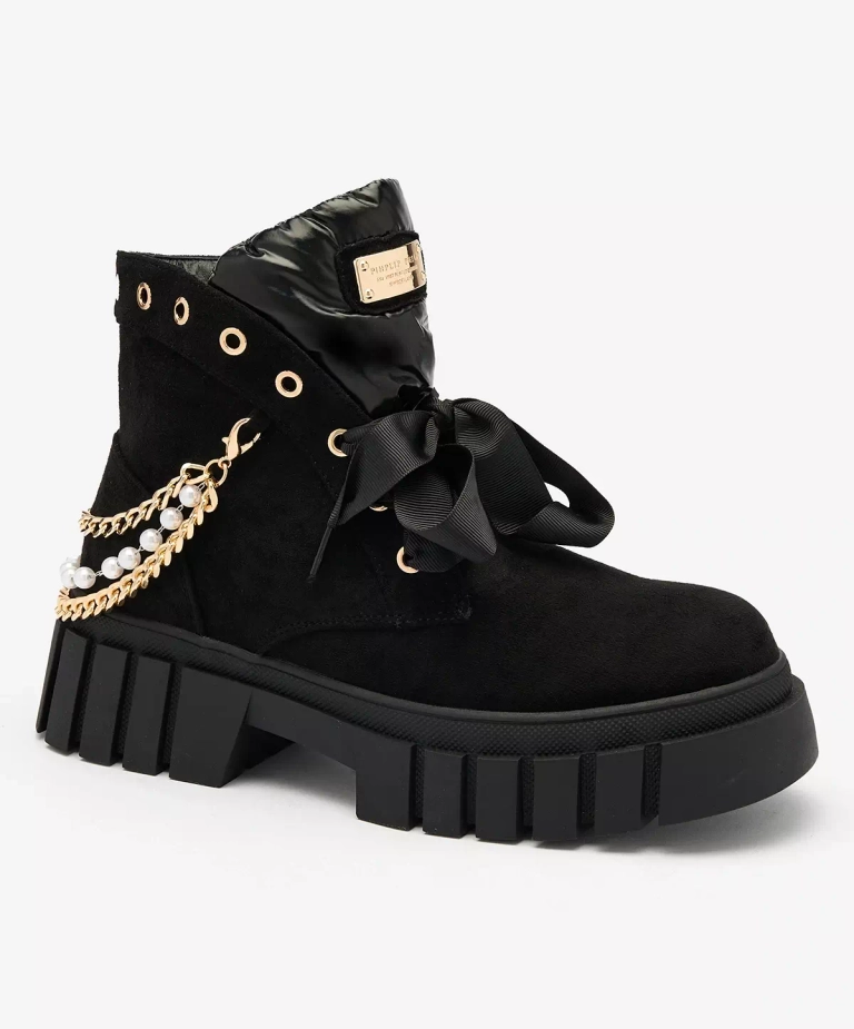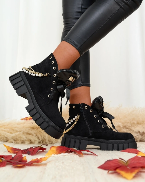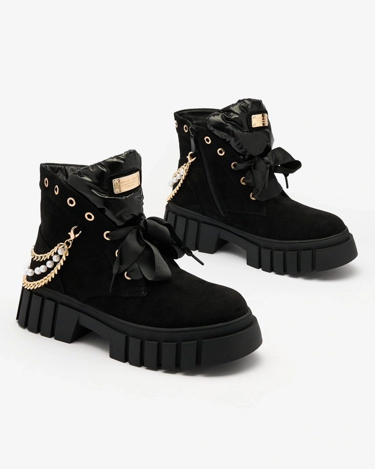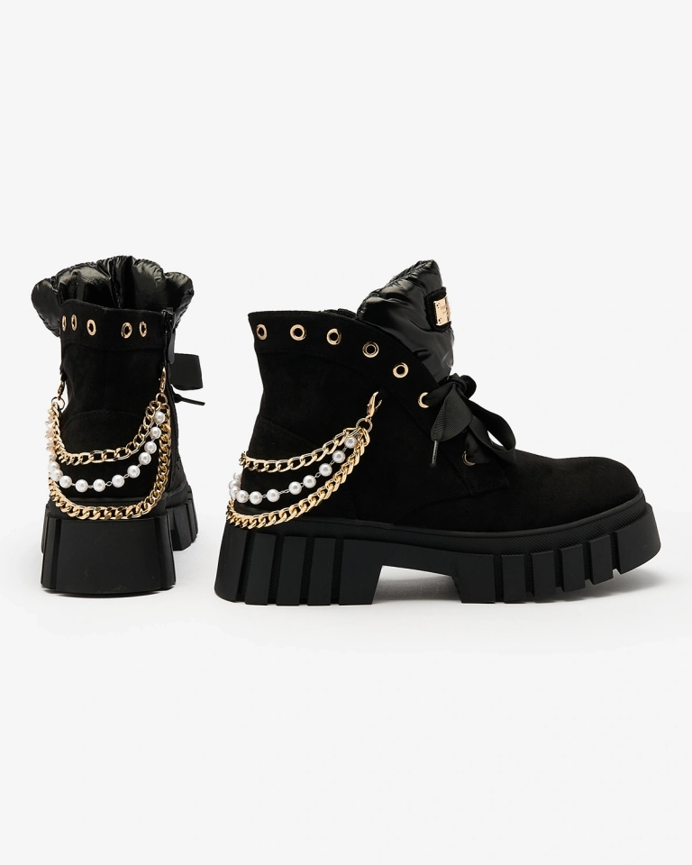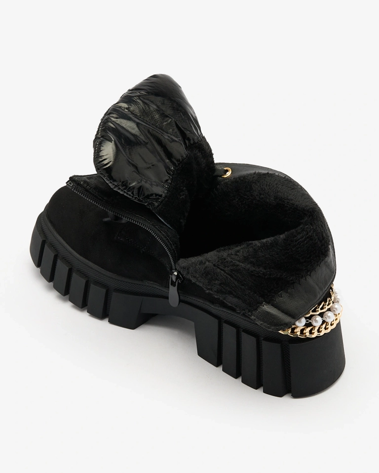 • Gyönyörű női fűzős oldalú, öko velúrbőrből készült, belül puha szőrmével töltött női csizma. Ezen kívül levehető láncok gyöngyökkel mellékelve. Tökéletes a stílusos öltözékek összeállításához! FEKETE NŐI HŐSZIGETELT CSIZMA DAHAFF