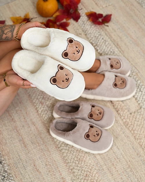 - Egyedi női papucs lapos talppal, mackófoltokkal díszítve. A modell szőrmét imitáló anyagból készült. Remek választás az otthoni öltözködéshez!