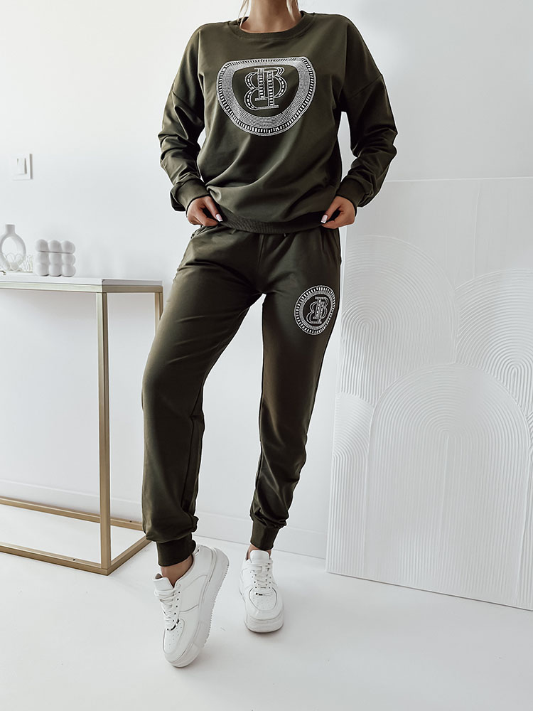Royalfashion Sötétzöld női pulóver szett cirkókkal