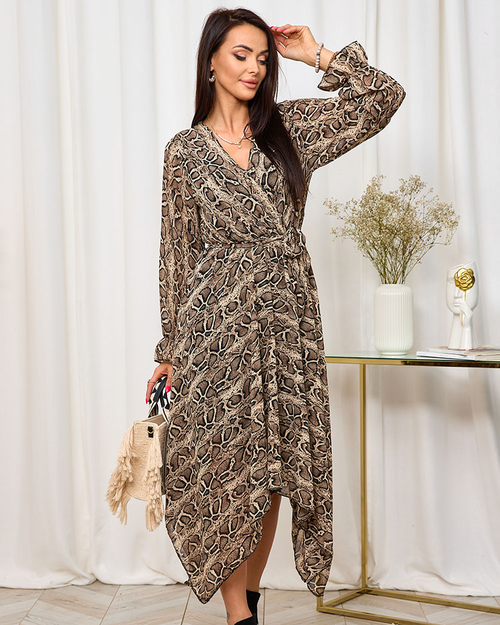 Royalfasion Sötétbarna női hosszú ruha divatos mintával