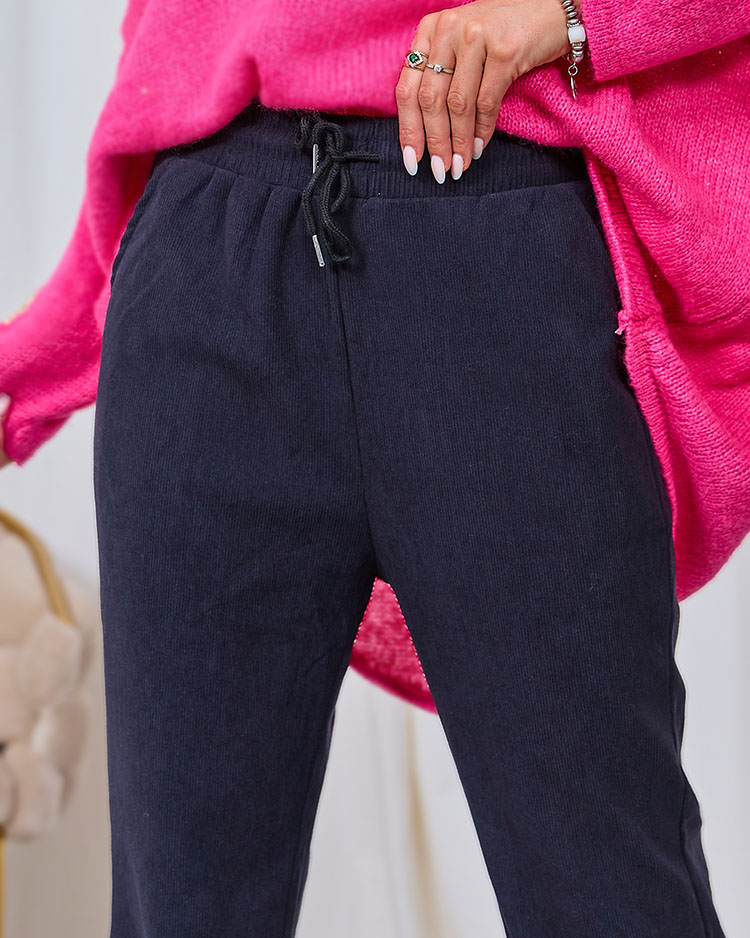 Royalfashion Navy kék női kordbársony szövetnadrág
