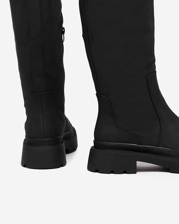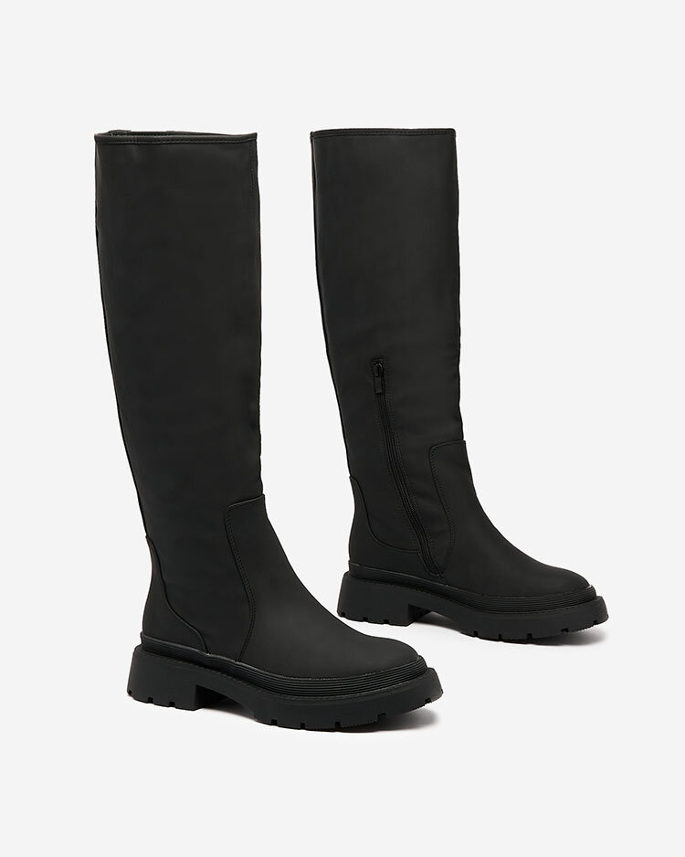 Royalfashion matt fekete női térdig érő csizma Ikemis