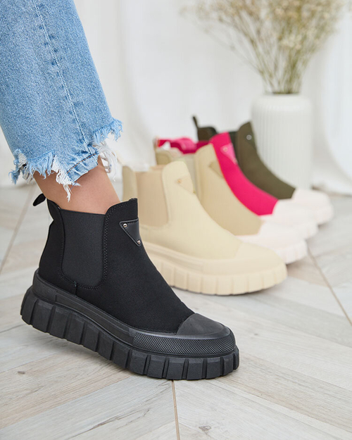 • Időtlen női magas tornacipő szövet anyagból. A modell masszív platformon. A felsőrész fűzős. Remekül illik majd a mindennapi stílushoz!