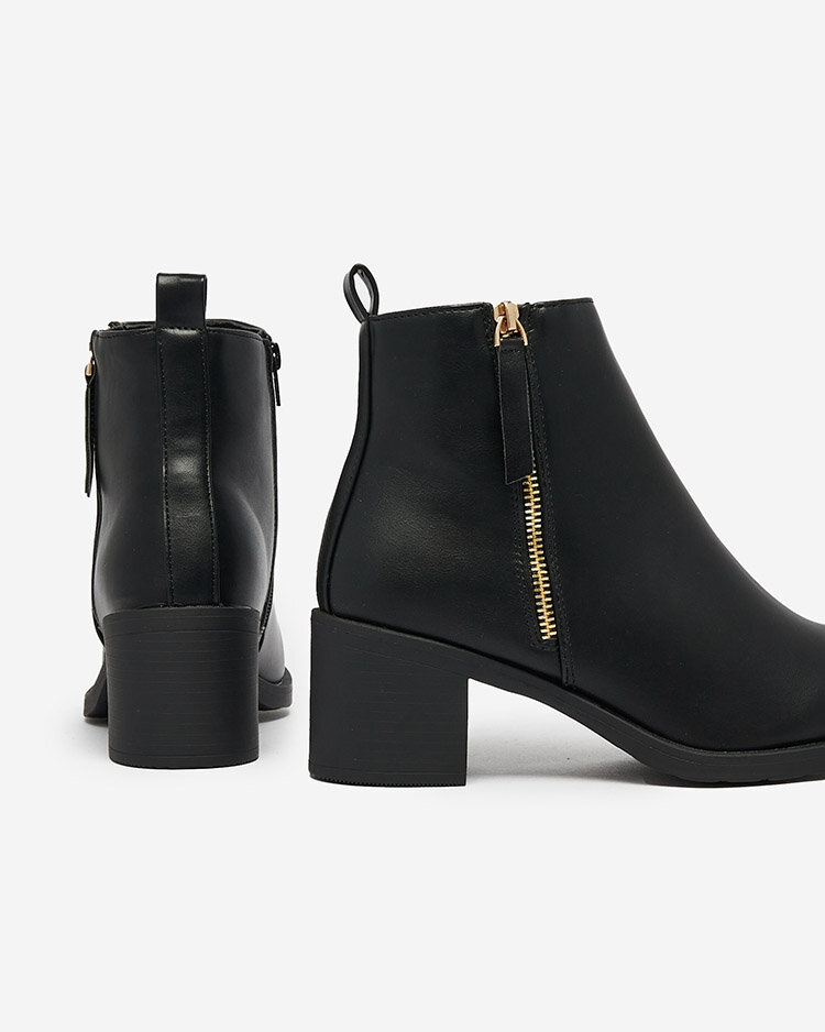 - Stílusos női alacsony tűsarkú csizma. A felsőrész öko bőrből készült, a belseje szőrmével szigetelt. A lábbeli cipzárral záródik. Nagyszerű választás őszre!