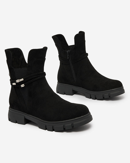 Royalfashion Fekete női csizma díszes pánttal Dafflo