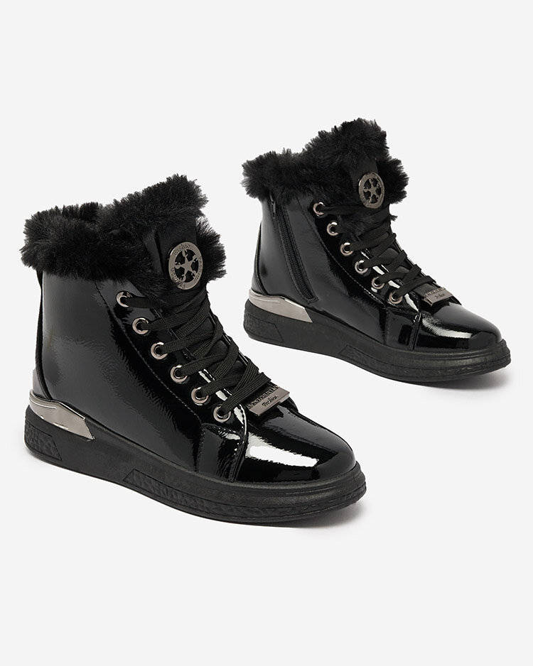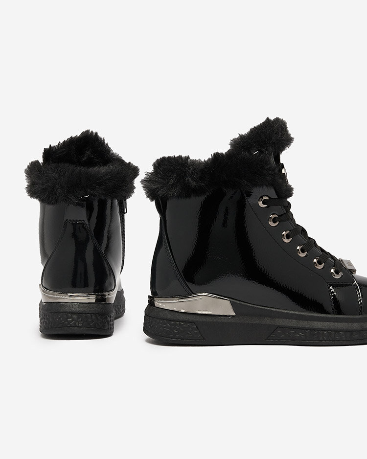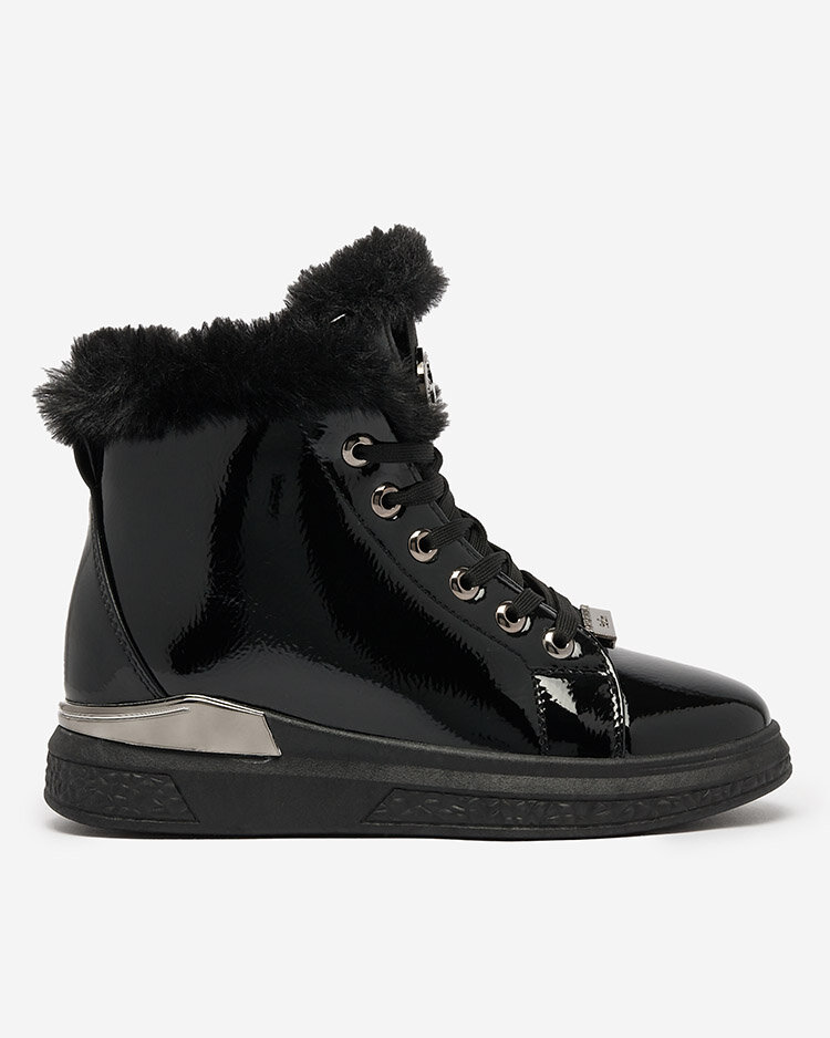 Royalfashion Lakkozott fekete női szigetelt tornacipő Rebucca