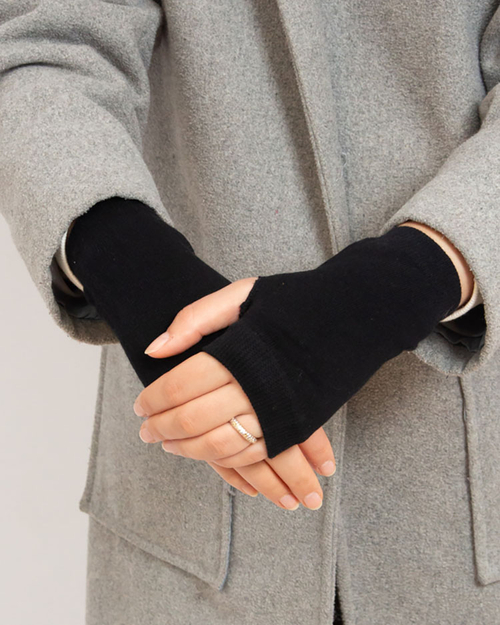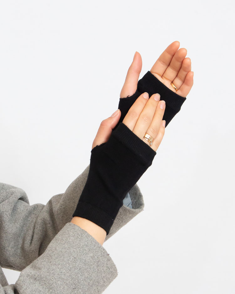 Royalfashion Fekete női szövetkesztyű kivágásokkal