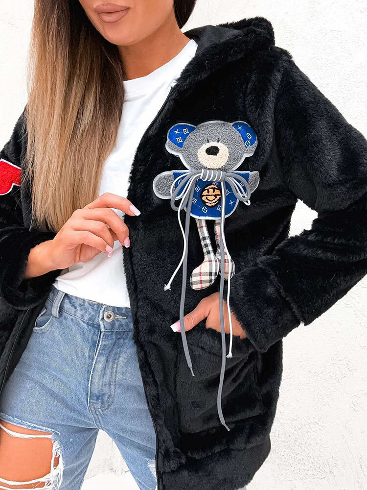 - Meleg és puha gyapjú, tökéletes a hidegebb napokra. Egyedi kék mackóval díszítve, amely bájt és eredetiséget kölcsönöz. Kapucnival, zsebekkel az elején és praktikus cipzárral.