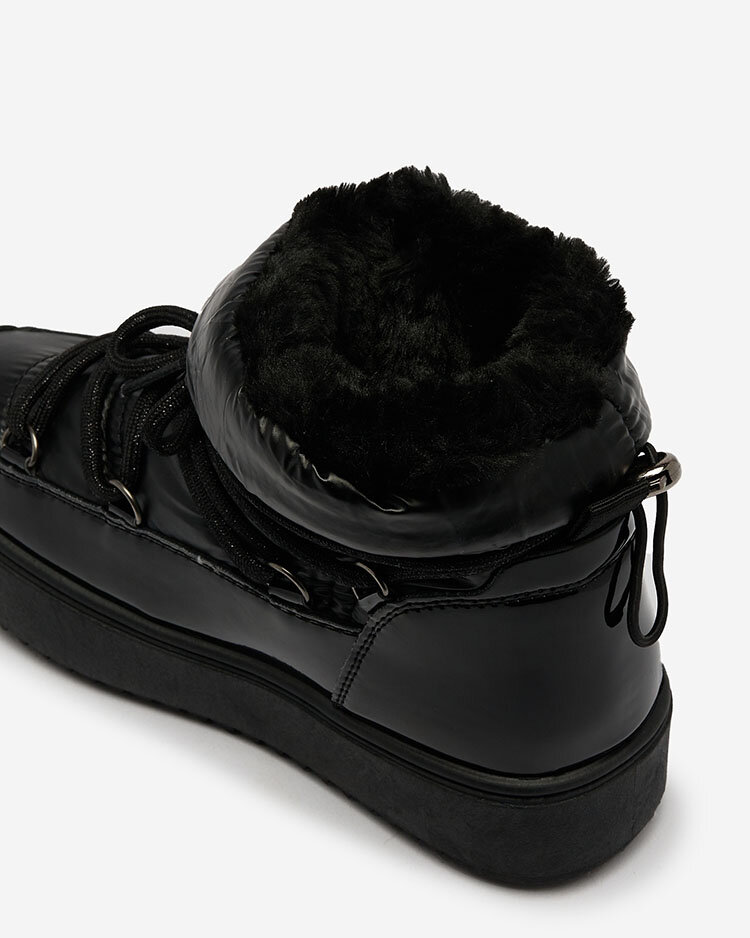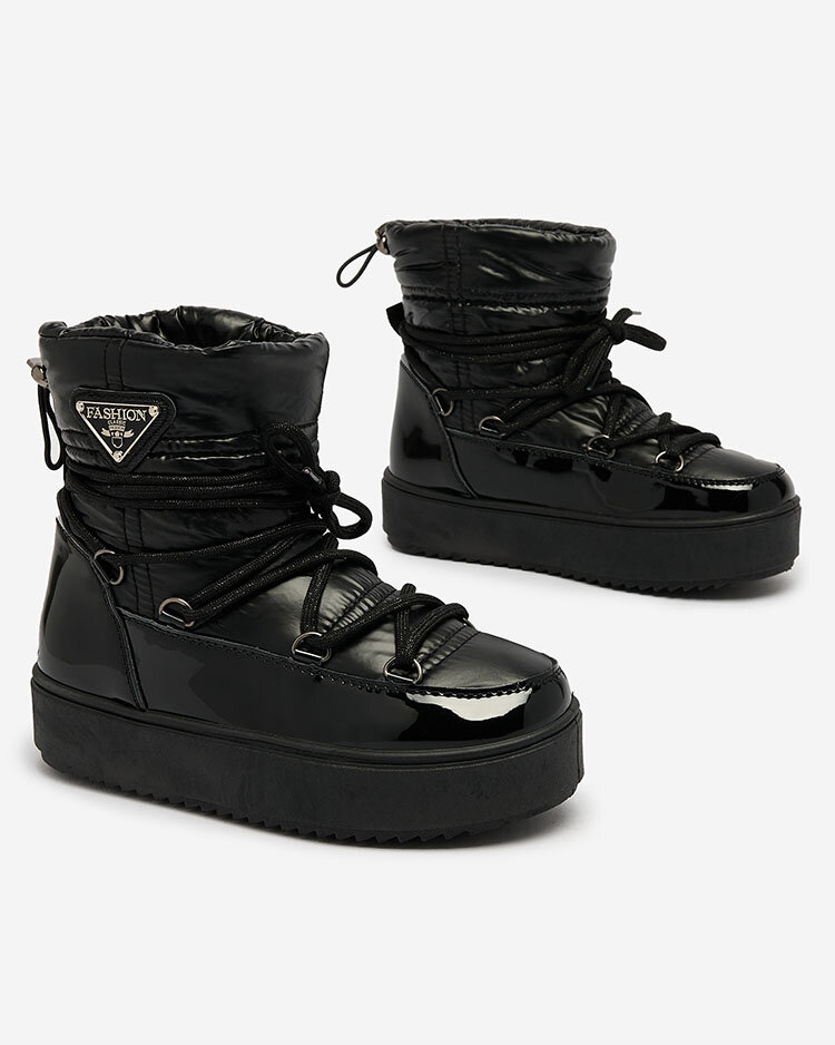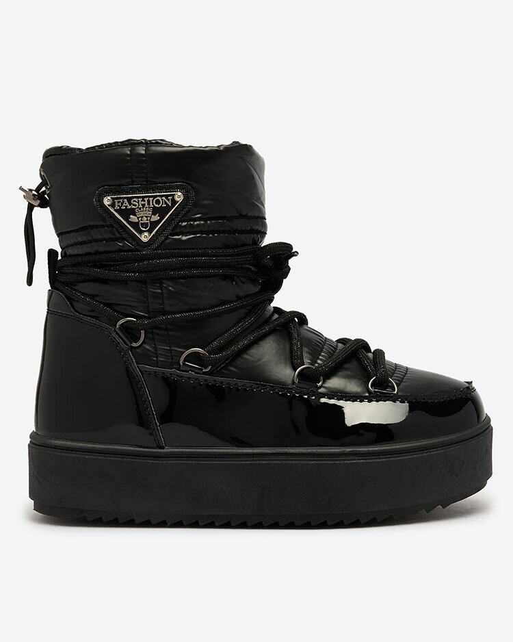 - Gyönyörű gyermek papucsos hócsizma. A felsőrész lakkbőrből és műszálas anyagból a'la olajvászonból készült. Belül vastag szőrmével van szigetelve. A cipő a felsőrész felső részén szegélyléccel és díszes fűzővel rendelkezik.