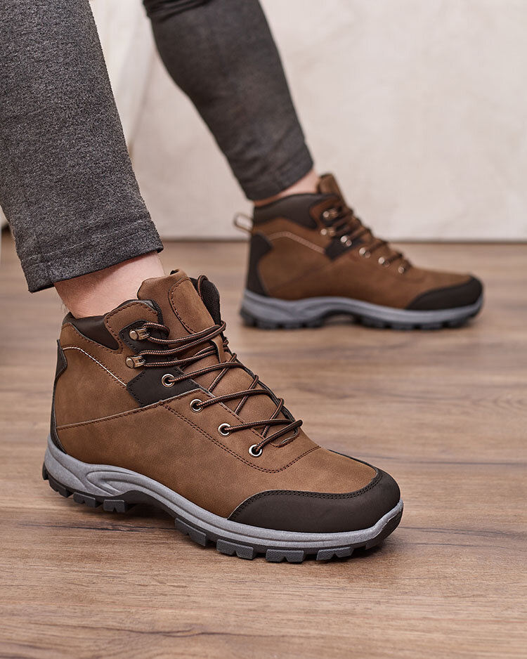 - Férfi trekking túrabakancs fűzős felsőrésszel. A konstrukció anyaga matt ökobőr, a cipő közepe vékony habszivaccsal szigetelt. Ideális a téli időszakra!