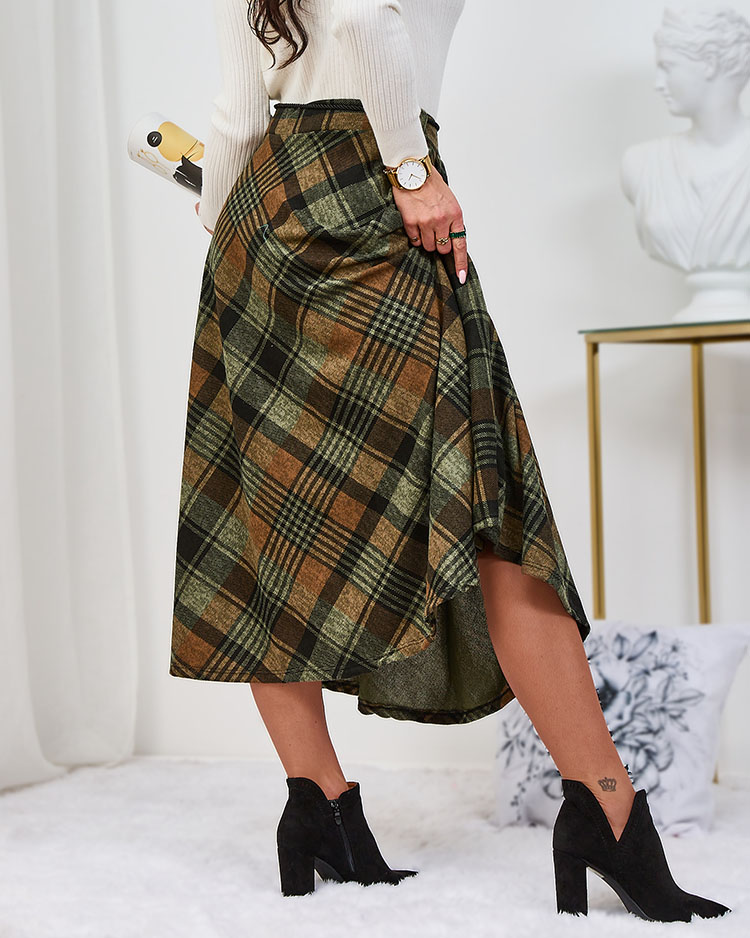 Royalfashion Világosbarna és zöld női kockás midi szoknya