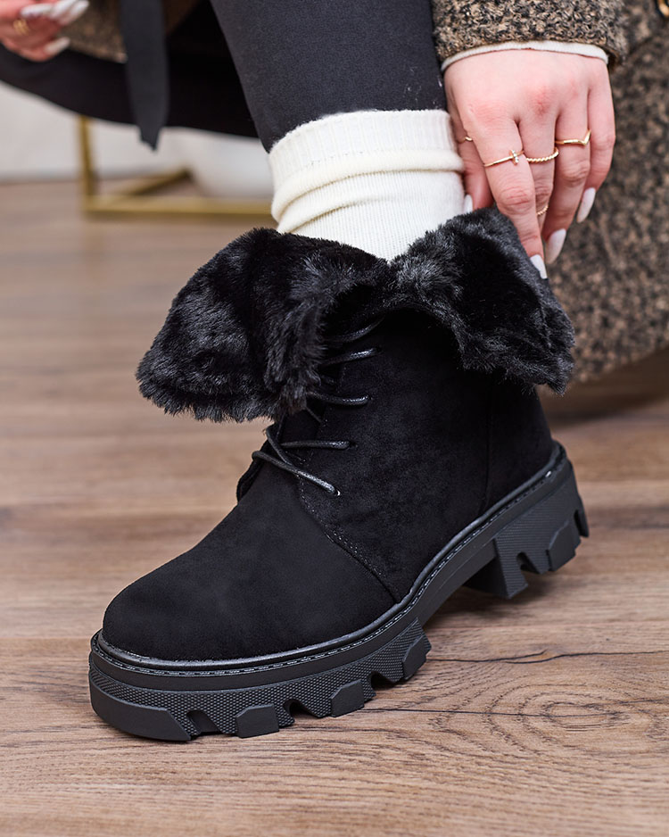 Royalfashion Fekete női fűzős csizma Cavenma