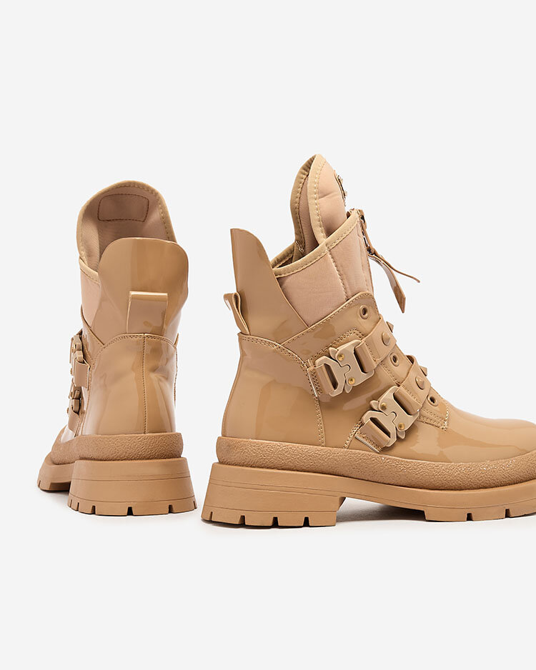 • A női bagger csizma egyedi lábbeli, amely egyesíti a stílust és a kényelmet. Öko lakkbőr és szövet kombinációjából készültek, középen cipzárral és strasszos csíkokkal, amelyek karaktert és eredetiséget kölcsönöznek a cipőnek.