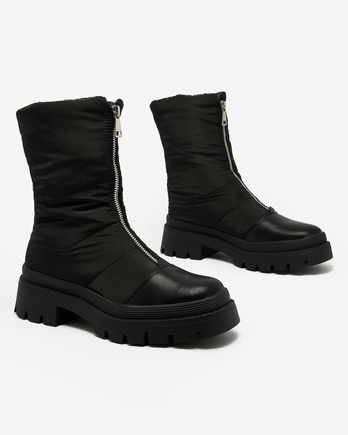 - Ezek a női csizmák egyedi lábbelik, amelyek egyesítik a stílust és a kényelmet. Öko bőrből és szövetből készültek, szőrme talpbetéttel. A felsőrész közepén cipzárral záródnak, ami eredetiséget kölcsönöz nekik!