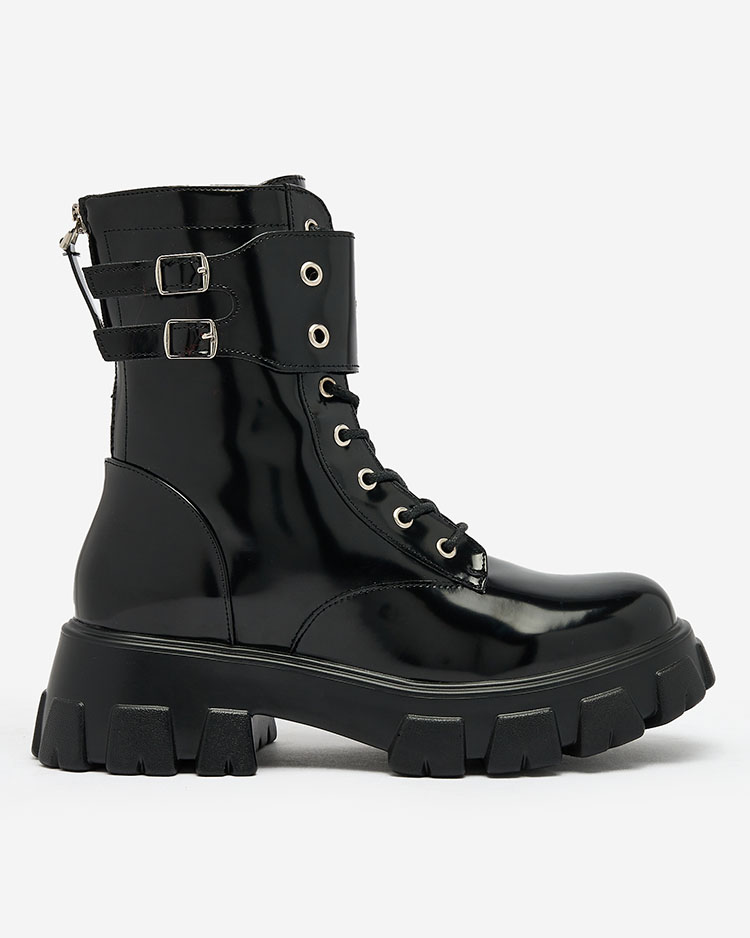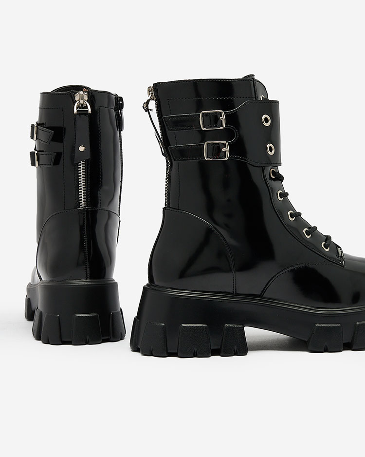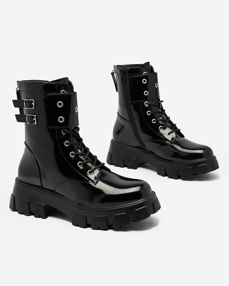 Royalfashion Fekete lakkozott női bagger csizma Xagaga