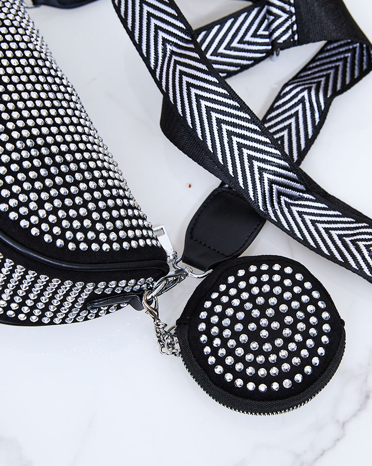 Royalfashion Fekete női kézitáska ezüstszínű strasszkövekkel