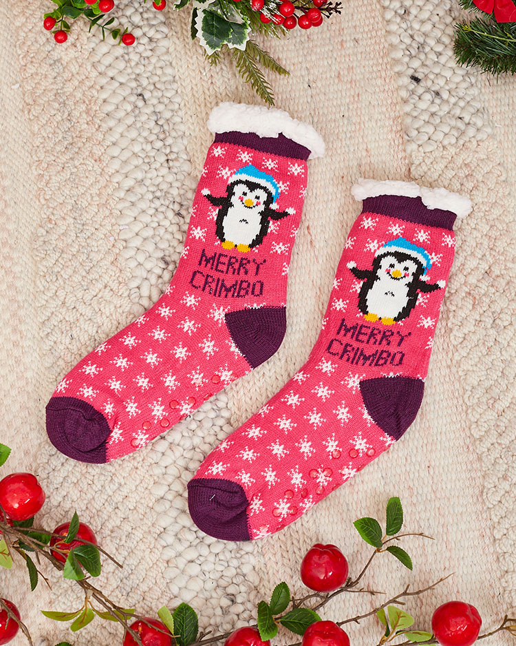 • Gyönyörű, vastag női zokni karácsonyi mintával, csúszásmentes aljjal. Belül fehér meleg báránybőrrel szigetelt. A zokni nagyszerű lesz a hidegebb estéken.