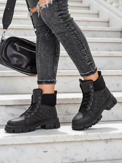 - Időtlen női csizma a'la trappers. A fűzős felsőrész matt ökológiai bőrből készült, a középső rész puha szőrmével szigetelt. Steppelt betéttel és báránybőrrel díszített modell. Szuper kiegészítője a téli öltözékednek!