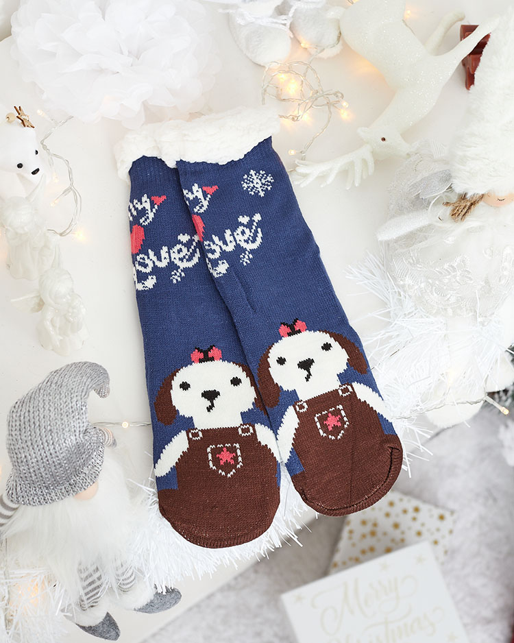 • Gyönyörű, vastag női zokni karácsonyi mintával, csúszásmentes aljjal. Belül fehér meleg báránybőrrel szigetelt. A zokni nagyszerű lesz a hidegebb estéken.