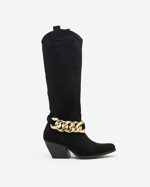 Royalfashion Fekete női csizma a'la cowgirls Tegona