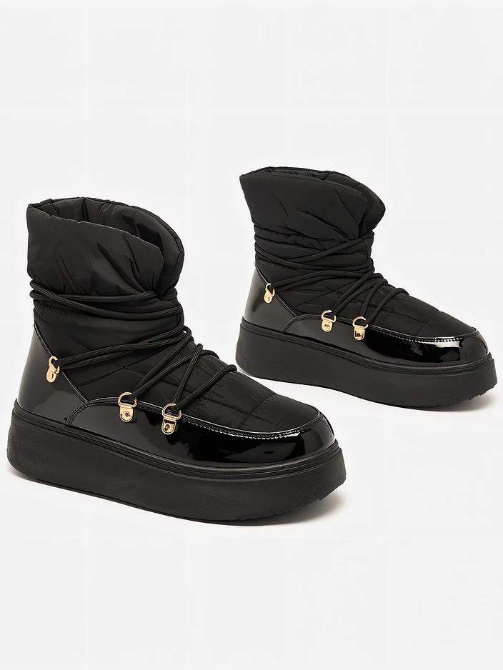 - Időtlen női hócsizma. A felsőrész a'la cerata anyagból és a betétek lakkozott ökobőrből készültek. Belül szőrme formájában melegítő, fűzős lábbeli. Ideális a hidegebb évszakra!
