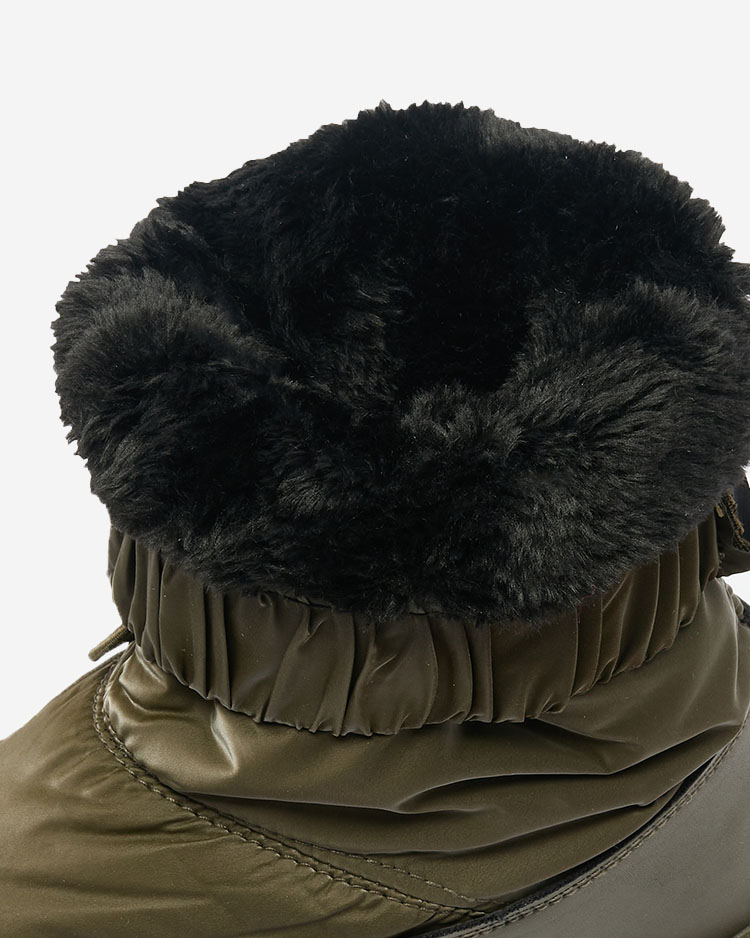 • Szenzációs női hócsizma. A felsőrész a'la cerata anyagból és ökológiai bőrből készült betétekkel. Belül szigetelő szőrme formájában, a lábbeli szegéllyel rendelkezik. Tökéletes a téli időszakra!