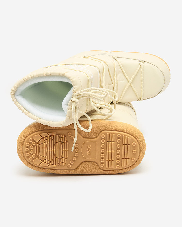 • Női csizma a'la hócsizma. Habbal szigetelt szövetből és ökobőr betétekkel. Fűzős modell, a felsőrész felső részén szegéllyel rendelkezik. Ideális választás a téli stílushoz!