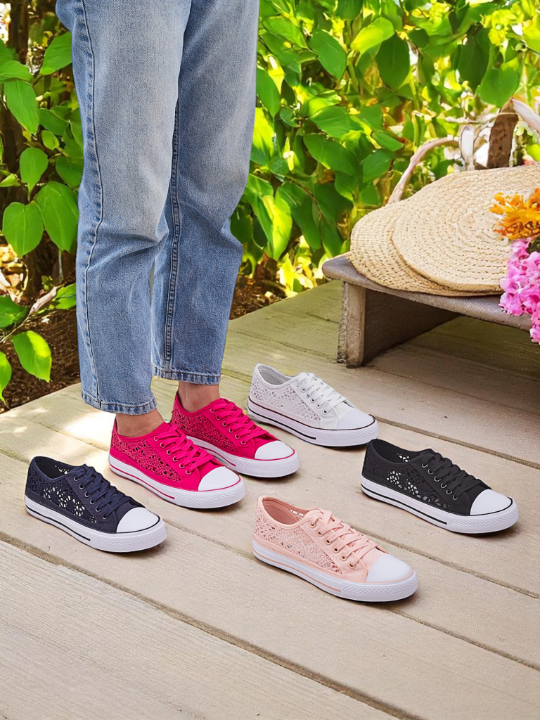 A fukszia színű Callista női tornacipők a kényelem és a stílus szerelmeseinek készültek. A felsőrészük kiváló minőségű pamutszövetből készült, áttört szövésű, ami nemcsak rendkívül nőies megjelenést kölcsönöz, hanem a legmelegebb napokon is kiváló légáteresztést biztosít. A kézzel készített elemek és a fejlett gyártási folyamat tartósságot és kényelmet biztosít minden lépésnél. A betét szintén puha szövetből készült, amely egész napos kényelmet biztosít, a 2,5 cm magas lapos talp pedig rugalmas anyagból készült, amely alkalmazkodik a láb mozgásához, elnyeli az ütéseket és kiválóan alkalmas hosszú sétákhoz.Ezeknek a cipőknek a viselése nemcsak kényelmet és könnyedséget jelent, hanem kiemeli a saját stílusát a mindennapi és a félig formális stílusokban is. Az anyag lehetővé teszi a lábak lélegzését, és minimalizálja a túlmelegedés vagy a horzsolások kockázatát még intenzív használat során is. A divatos fukszia feldob minden stílust, és tökéletesen illeszkedik a tavaszi-nyári szezon jelenlegi színtrendjeibe.Három stílusjavaslat:1. Válasszon egy hétköznapi megjelenést: kombinálja a Callista tornacipőket kedvenc mom-fit farmerjével és egy fehér pólóval, hozzáadva egy könnyű farmerdzsekit – ideális egy baráti találkozóhoz.2. Sportos stílus: válasszon leggingset és egy hosszabb, pasztell színű pulóvert – kényelmes sétához vagy a város aktív felfedezéséhez.3. Lányos változat: viseljen egy légies, virágos midi ruhát vagy egy pasztell szoknyát egy pántos felsővel. A könnyedség hatását éppen a fukszia tornacipők emelik ki.A cipők ápolása a szennyeződések rendszeres eltávolításából áll egy puha kefével vagy egy nedves ruhával. Szükség esetén a szennyeződéseket óvatosan, kézzel is le lehet mosni langyos vízben, enyhe mosószerrel. Szobahőmérsékleten szárítsa, távol a közvetlen napfénytől és hőforrásoktól, ami biztosítja a forma és a szín intenzitásának megőrzését.A Callista tornacipők tökéletesen illeszkednek a természetes anyagok és a kifejező színek divattrendjébe. Az áttört elemek és az energikus szín kötelező darab a tavaszi-nyári szezonban, amikor a kényelem és a légáteresztés kulcsfontosságú.