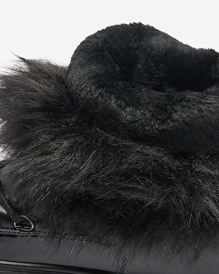 - Női hócsizma, melynek felsőrésze öko lakkbőr és a'la olajvászon anyag kombinációjából készült. Belül szigetelő szőrme formájában, cipőszőrme. A modell a felsőrész végén szőrmével rendelkezik. Ideális választás télre!